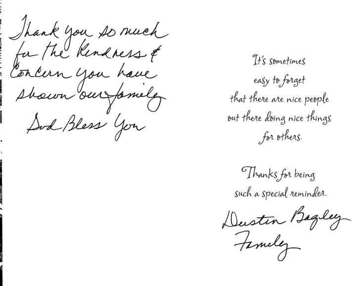 It is our greatest pleasure to hear from families we've served after the service is over. We receive many letters, cards and emails thanking us for our care and attention during their time of need and those words warm our hearts and affirm that we are truly here to serve.